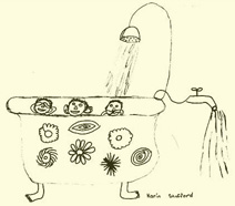 About a year ago Major Donn F. Eisele, one of three astronauts who will orbit the earth in the Apollo spacecraft scheduled to be launched this week, suggested with cheerful irreverence that Rub a Dub Dub might be a nice name for the ship. Then 10-year-old Karin Stafford, the daughter of the flight’s backup commander, immediately sat down with a pencil and drew the fanciful suit patch design shown above: an old-fashioned bathtub with human feet, a rickety shower pipe and three heads peering over the tub top.