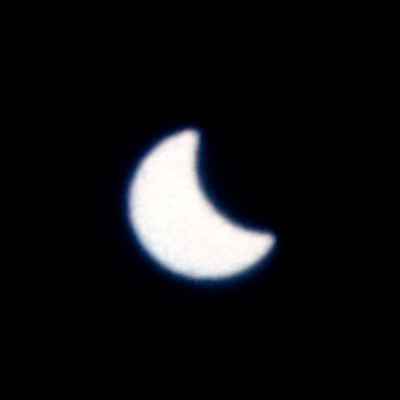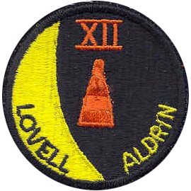 The designer of the patch, Anthony Tharenos, recalls that the crescent was related to the potential of observing an eclipse during the flight. Ken Young, a redezvous expert in the Mission Planning and Analysis Division (MPAD), recalled: “on that flight we flew through a total solar eclipse ... me and Ed Lineberry figured out how to do it. It was pretty tricky: they had like an 8-second window to fly through the path of the eclipse. Buzz got a real good shot of [it]. That was a rendezvous with a shadow. That was a true phantom rendezvous.” According to the Gemini 12 Mission Report: “... the crew reported that they had passed through the total eclipse starting at 16:01:44 g.e.t. According to postflight calculations, the spacecraft passed within about three nautical miles of the center of the 15-nautical-mile-radius umbra core.” While a solar filter had been provided for the purpose, a telephoto lens had not been, and so the images show just a miniscule crescent — only enough really, to prove it had been done.