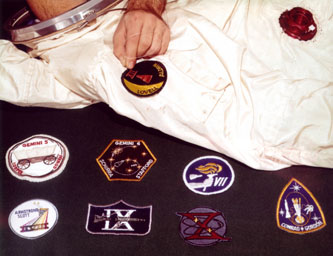 Lovell’s recollection of the design, as related by Lattimer, describes the crescent as representing the moon and thus implying a transition from the end of the Gemini program to the Apollo lunar program. But an even more persuasive interpretation is that the sun, emerging from eclipse, represents that transition to the sun god Apollo. Consider that Lovell’s Apollo 13 patch used the sun to represent Apollo.