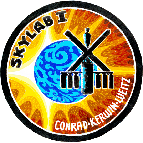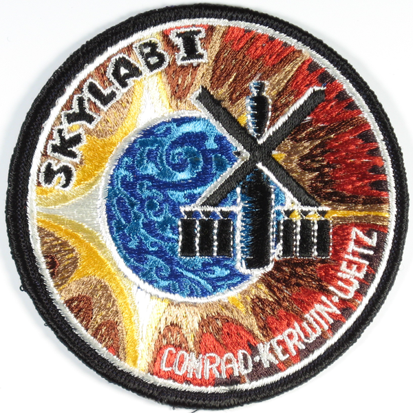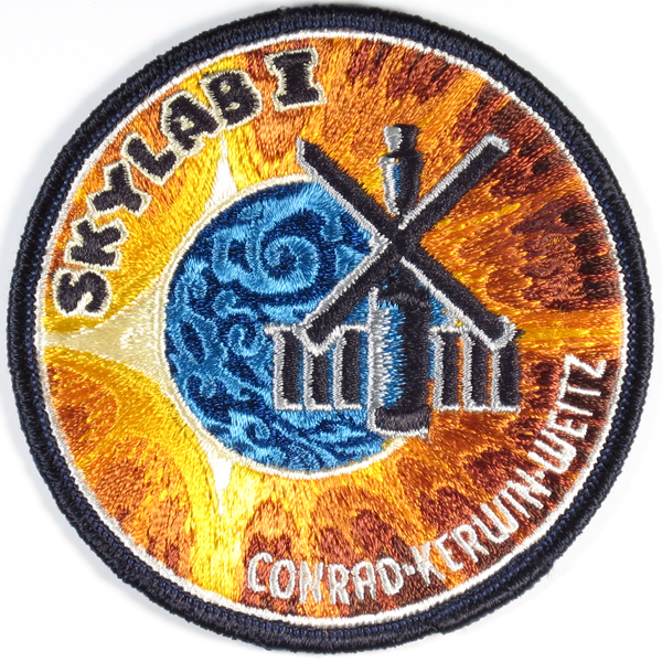 Freas did a wonderful job of avoiding overdone symmetry by placing all the main elements (the sun, the Earth and the Skylab spacecraft) off-center — each one independent, and none of them in the center of the patch.
