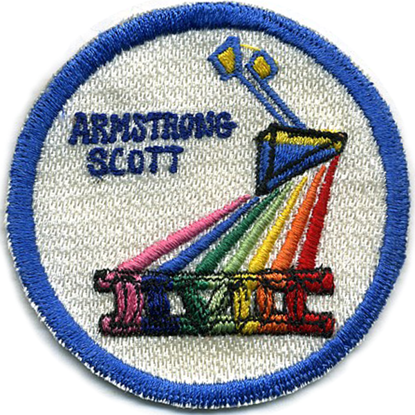 A striking feature of this patch is that the design on the patch neither conforms to nor acknowledges its enclosing circle in any way. It’s as if the design was arrived at without any concern for a dominant shape, and was then just plopped into a circle because that was the most common shape for a patch. The white background further emphasizes the disconnect. The Gemini 6 patch had set a precedent for using a polygonal patch shape, and a slight re-arrangement of the interior might have fit nicely into an octagon.