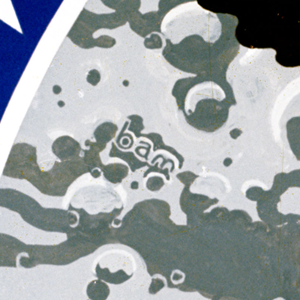 The artist, Barbara A. Matelski, inserted her initials near the eagle’s tail as a small detail in the lunar surface background.